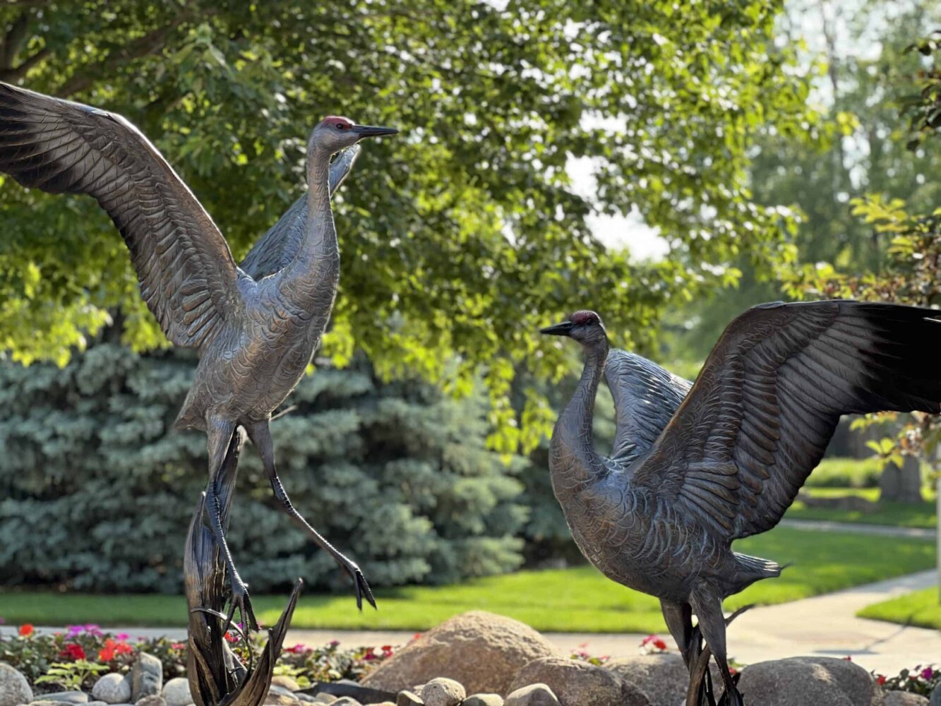 Cranes Location: Private Collection Size: 6 feet tall Materials: Bronze Date: 2022 BACK TO BUTTERFLY SCULPTURES